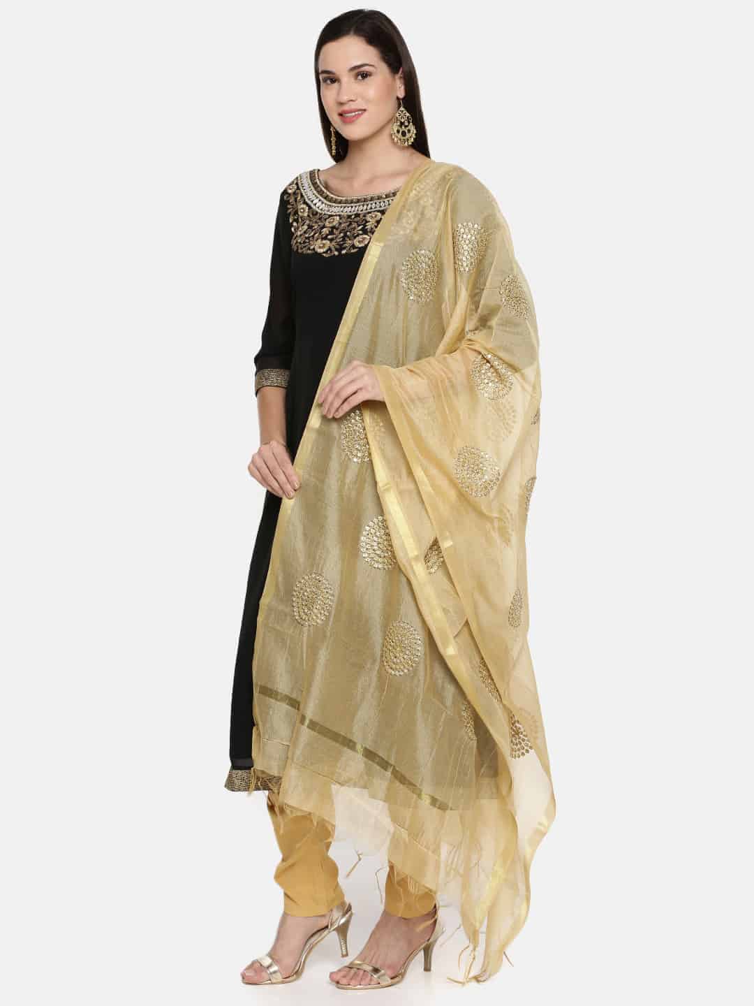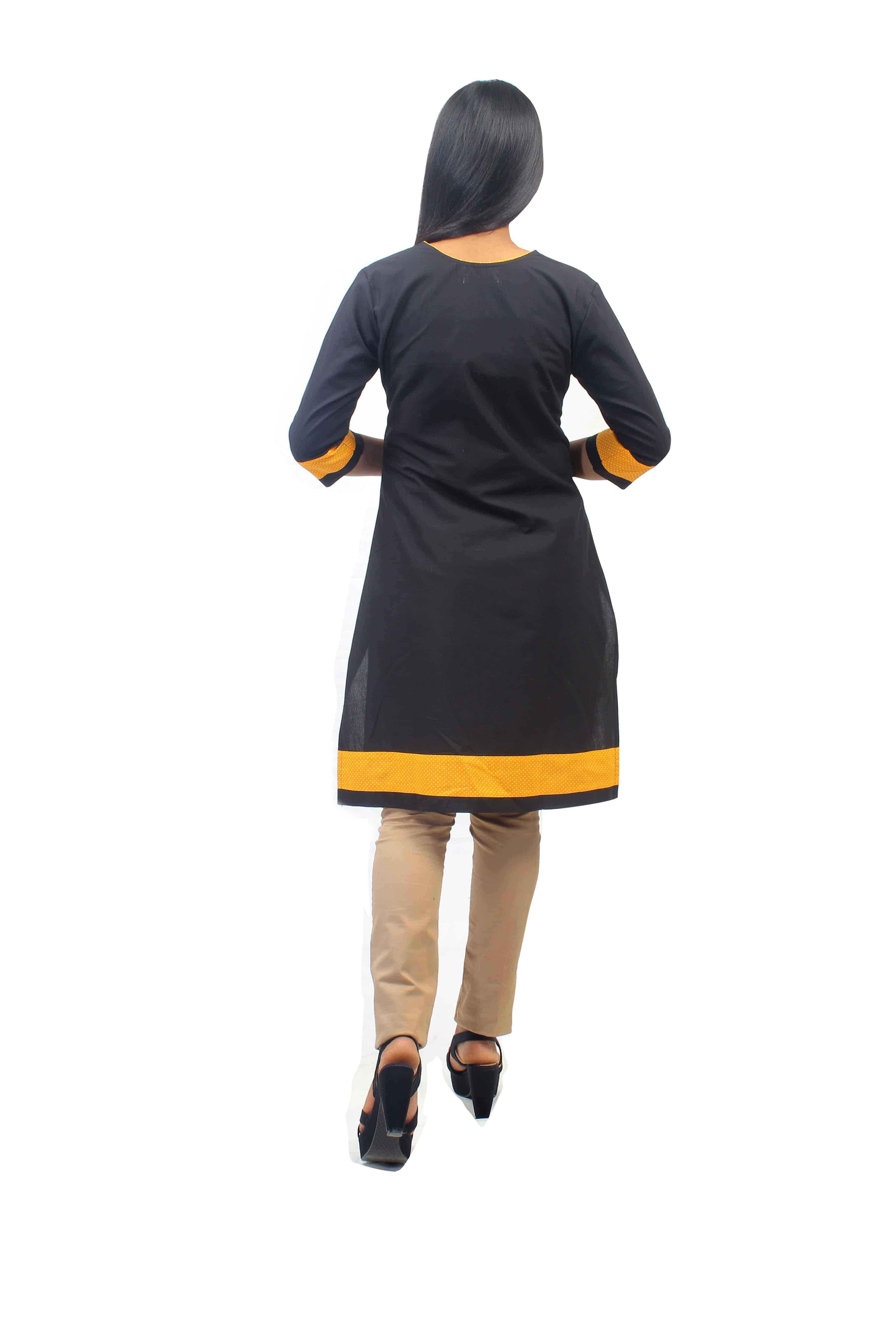 Black Cotton Kurti with Mustard Yellow Polka Dot Border Details-ROK069