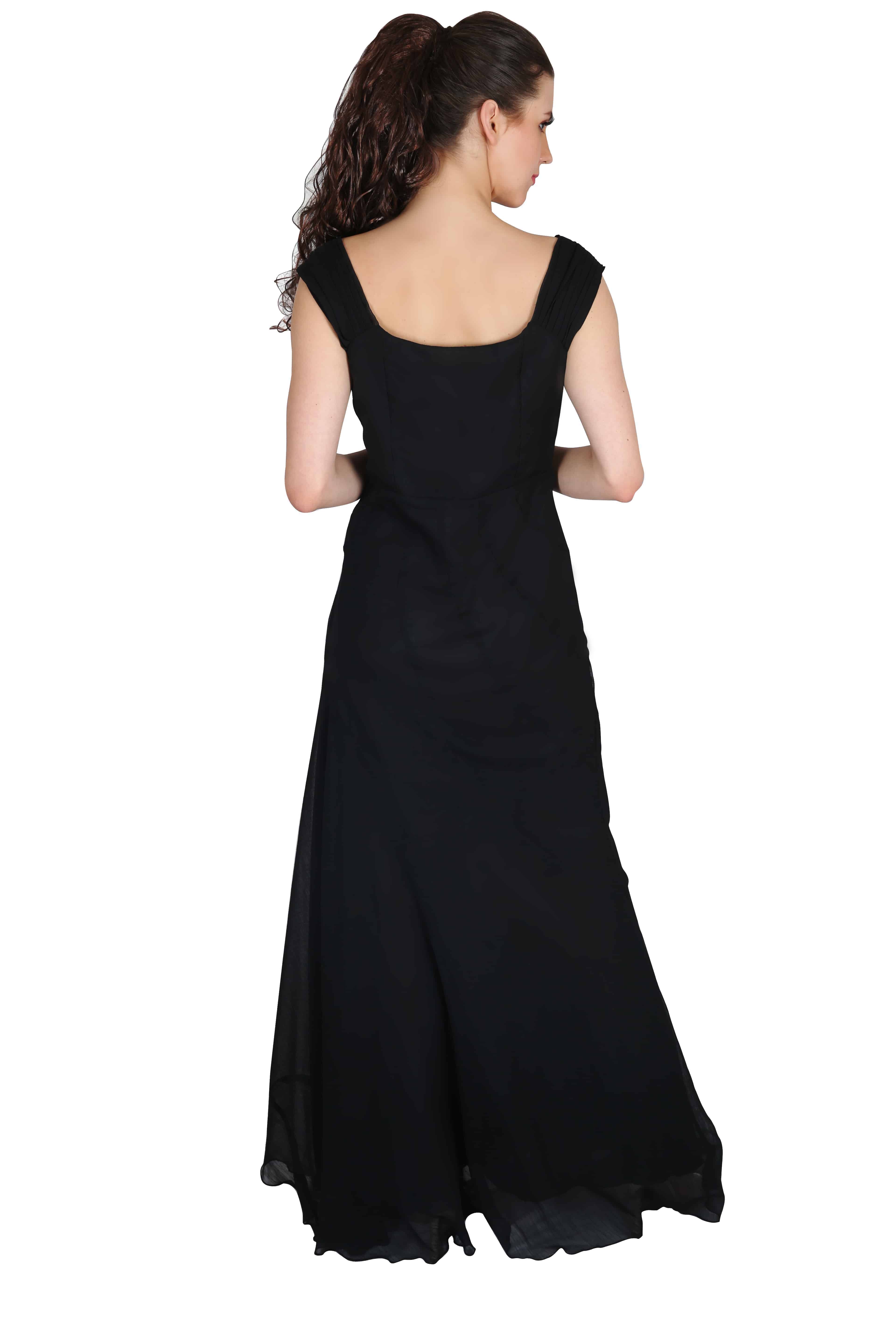 Black Plunging Solid Cape Dress-RED061B