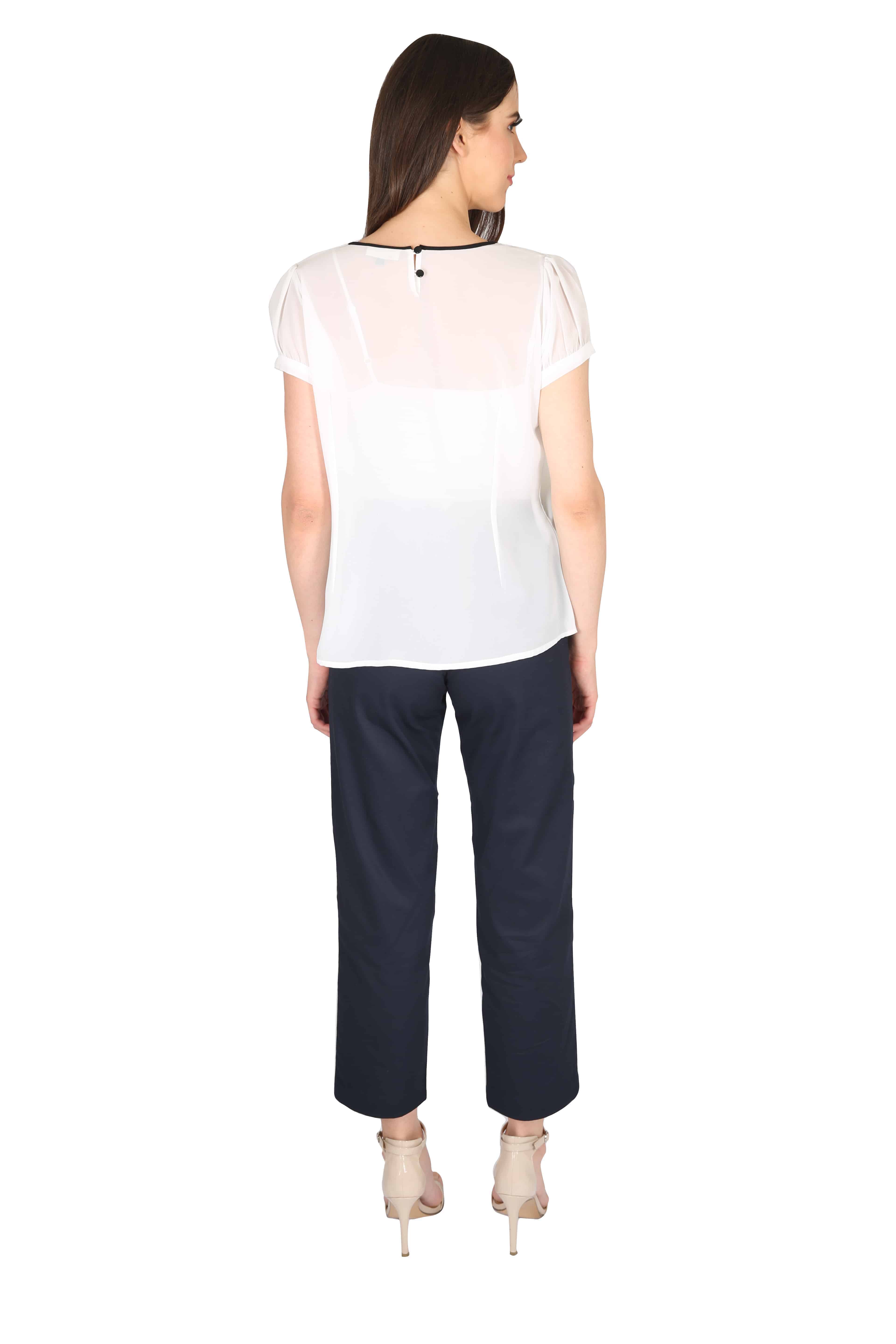 Off - White Boat Neck Ladies Blouse-RKFWW04