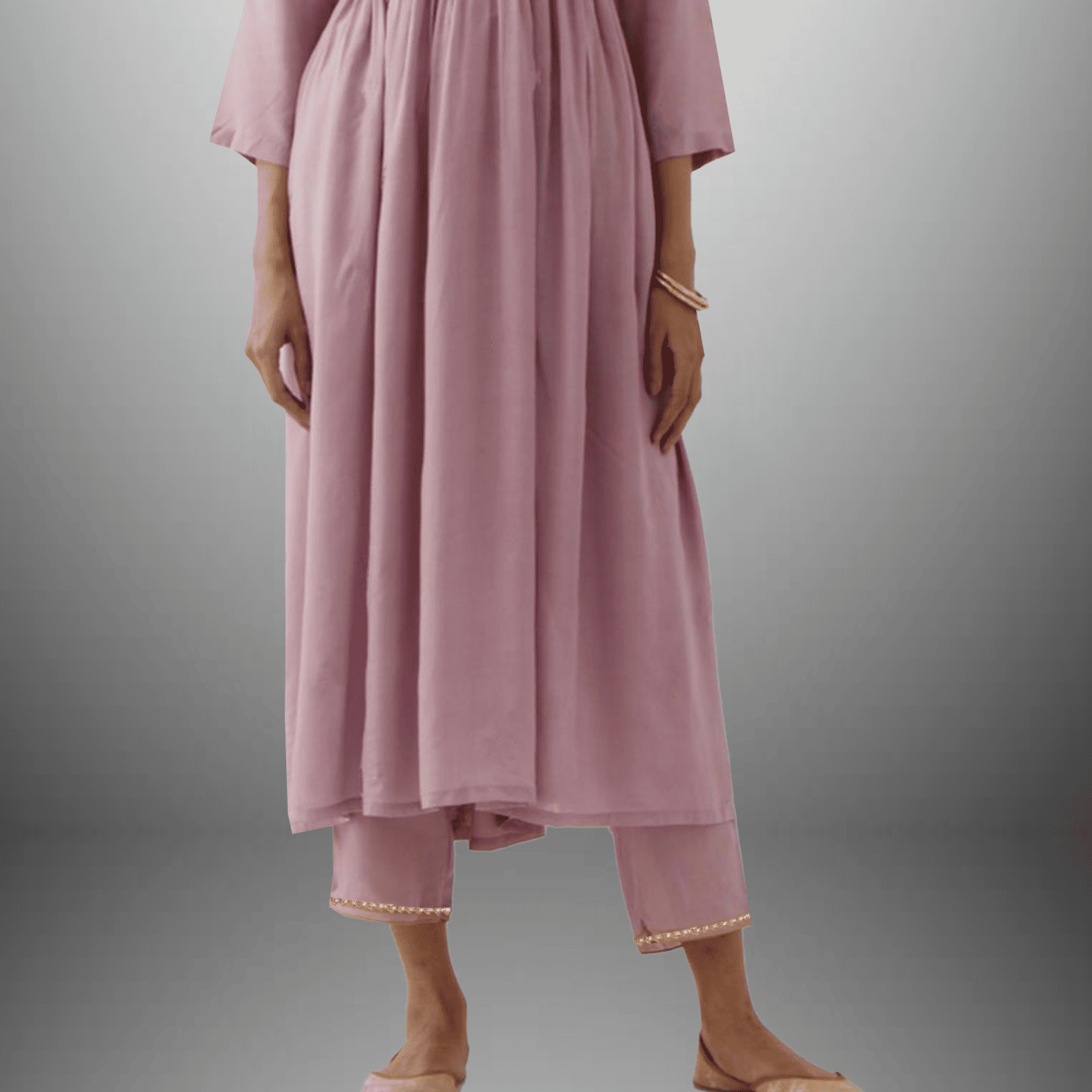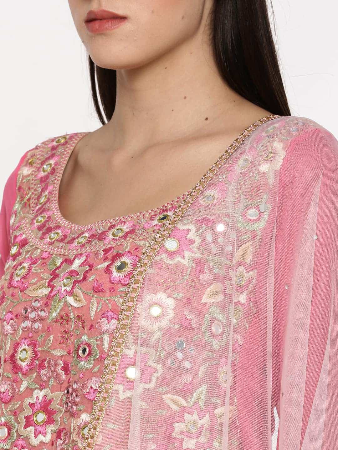 Women's Gathered Embroidered Kurta & Pant Set Light Pink - RWKS109B