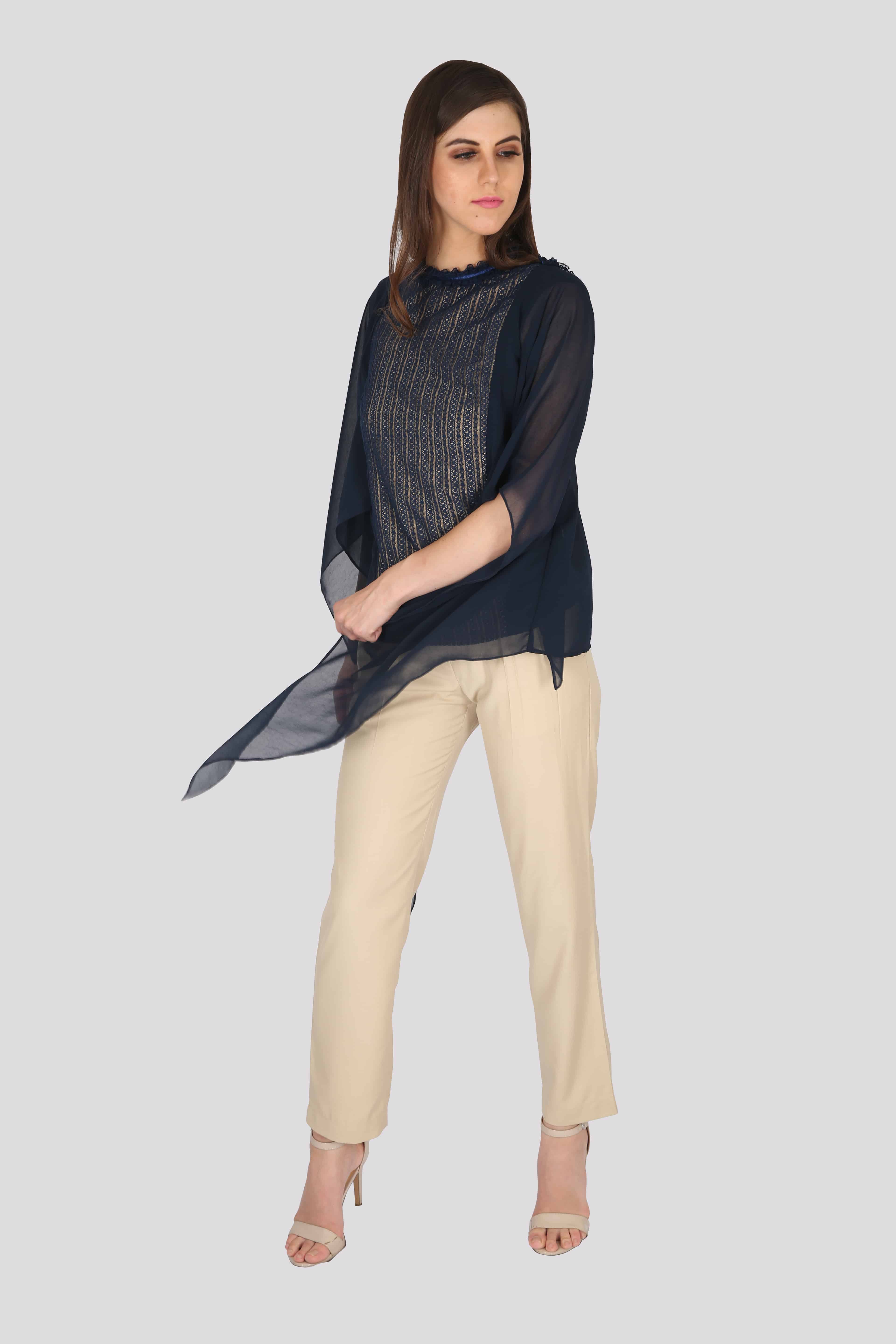 Women's Dark Blue Kurti set with Lace and Embroidery work-RWKS087