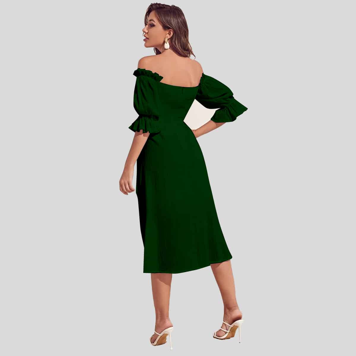 Forest Green Cut Out Waist Rucked Halter Dress-RCD015