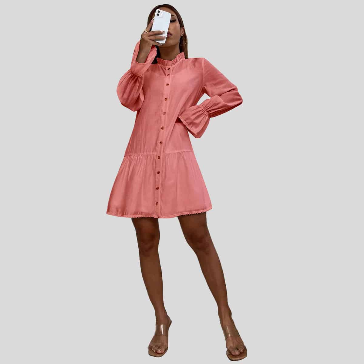 Baby Pink Tie Front Causal Dress-RCD014