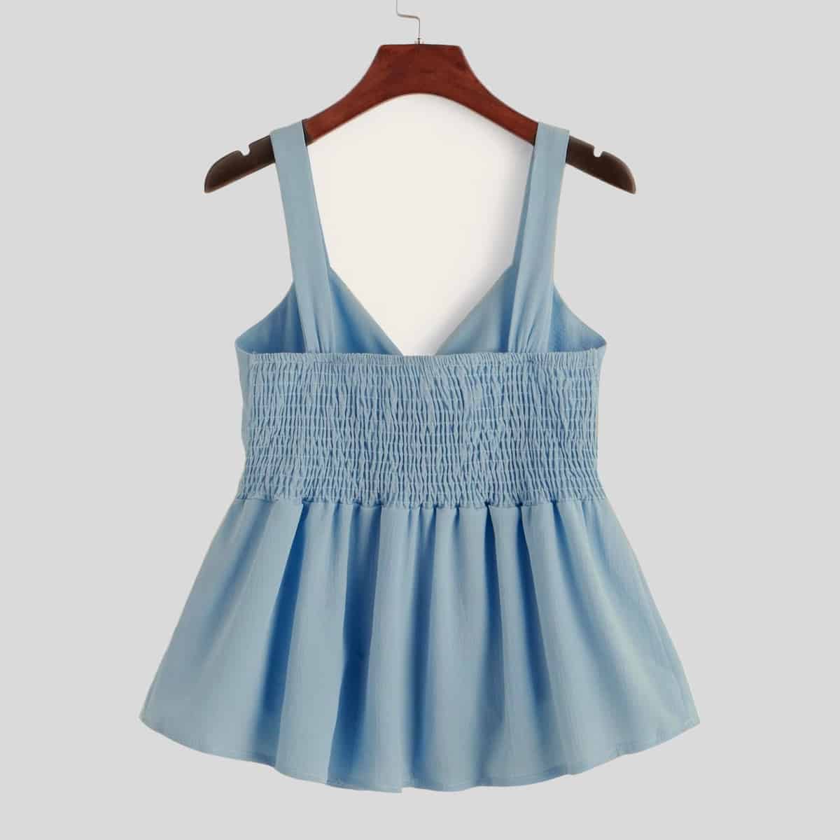 light blue Cross Backless Satin Top-RET082B