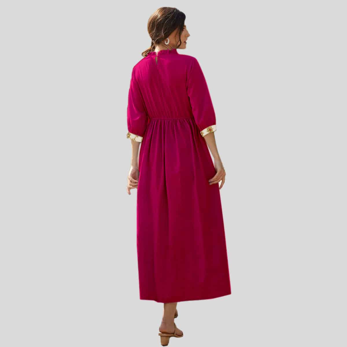 Wine Lapel Collar Butterfly Sleeve Shirred Waist Shirt Dress-REM009