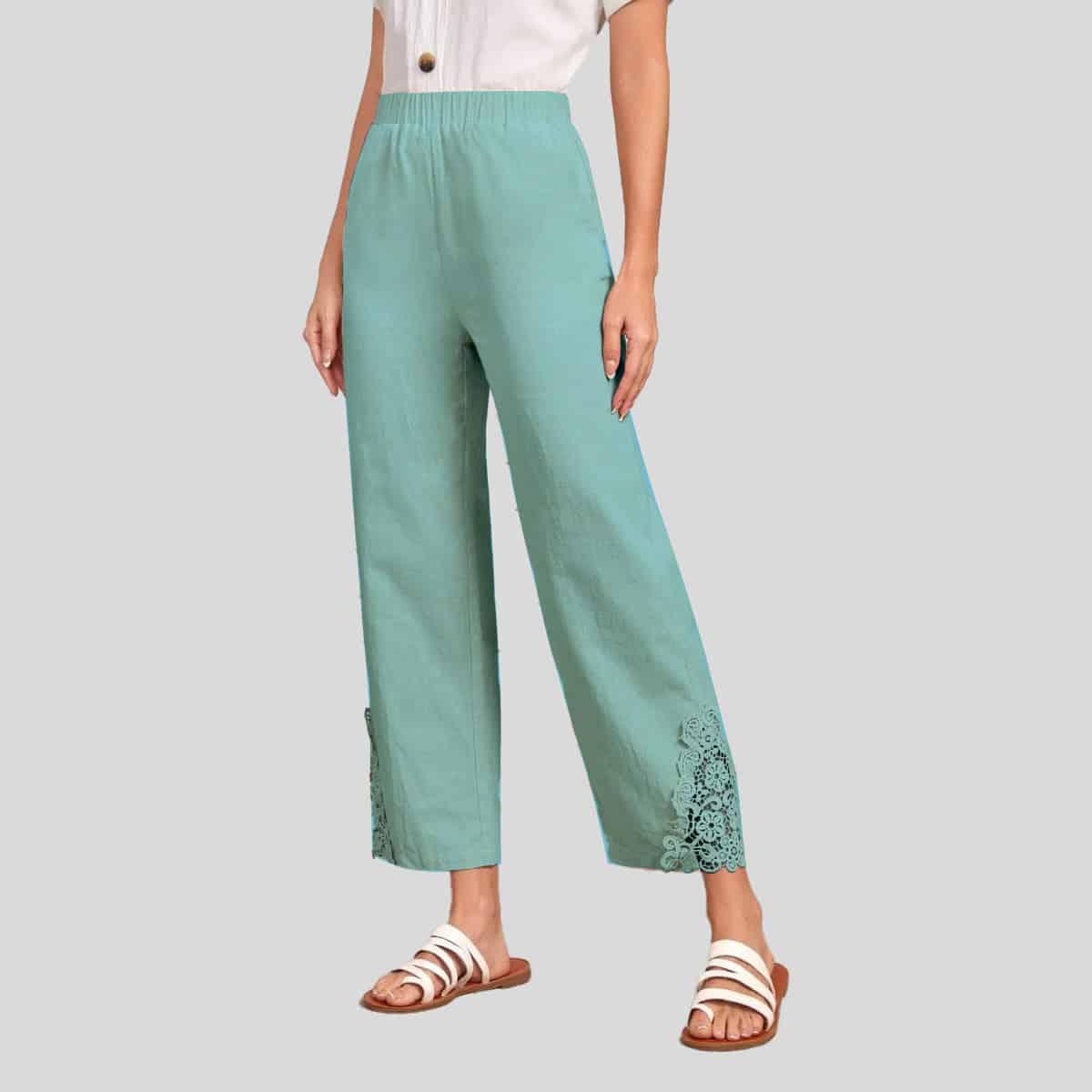Women's Parrot Green Cut and Sew Kurti With Neckline lace work with Pant and Lace embellished Dupatta - RWKS103