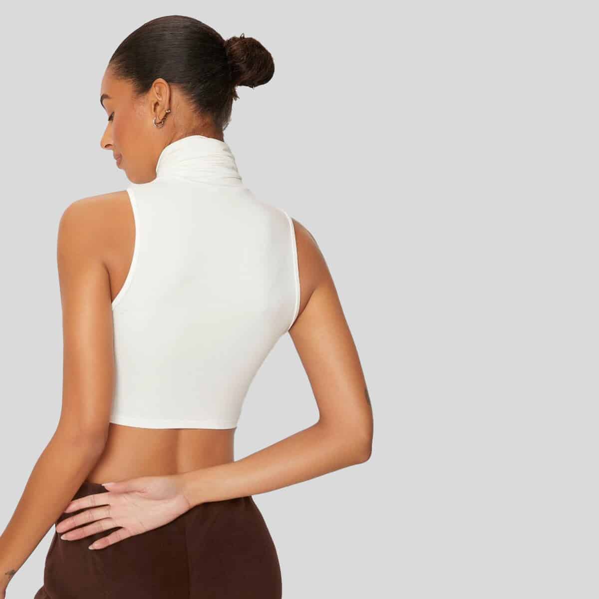 Juniper Green Lace Up Back Rucked Front Crop Top-RCT034