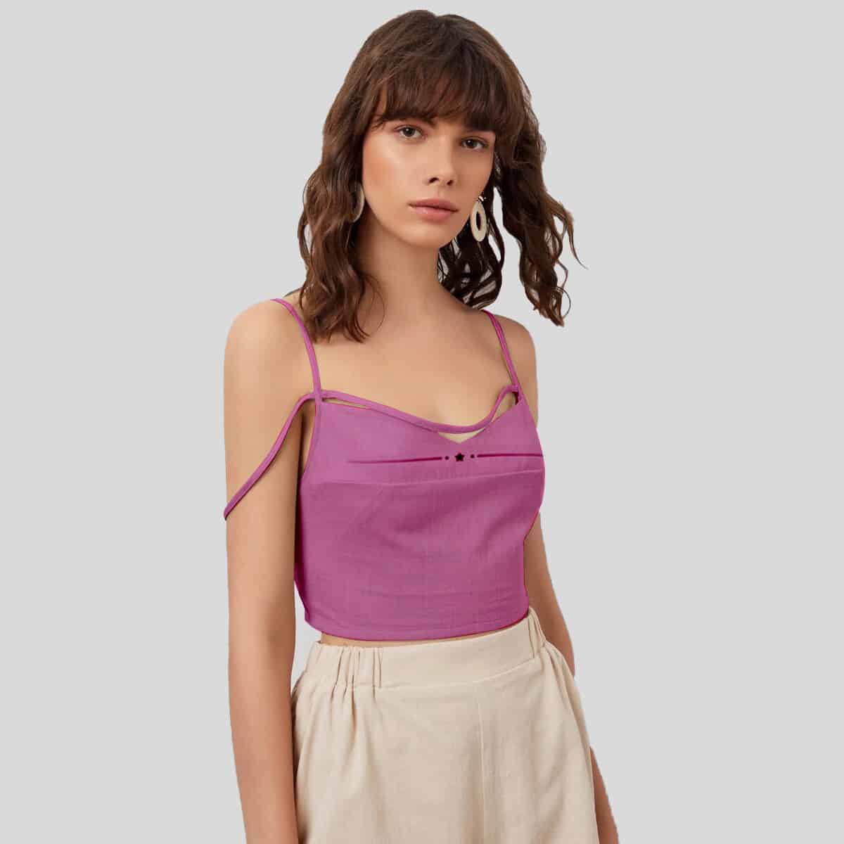 Pink Crises Cross Backless Satin Top-RET082A