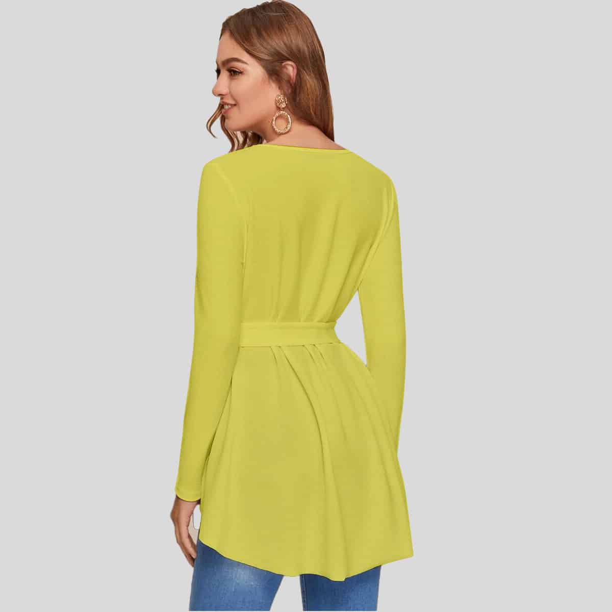 Yellow Blouson Sleeve Knot Front Wrap Dress-REM006