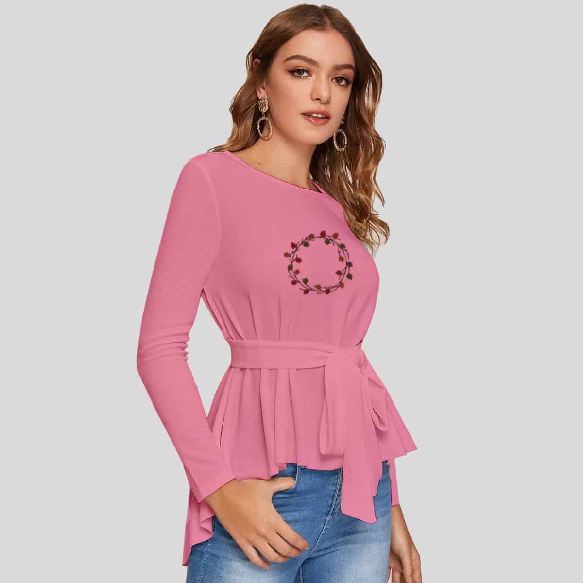 Pink Color Silk Fabric Round Neck Ladies Blouse-RKFWW09
