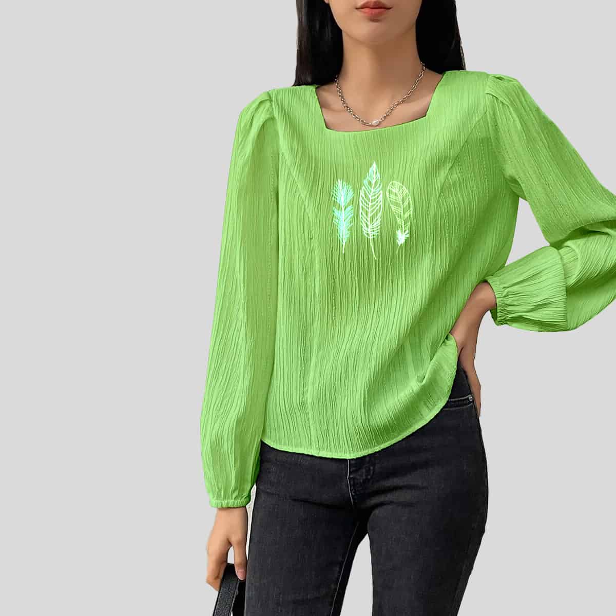 Light Mint Ruffle Trim Asymmetrical Neck Top-RET081A