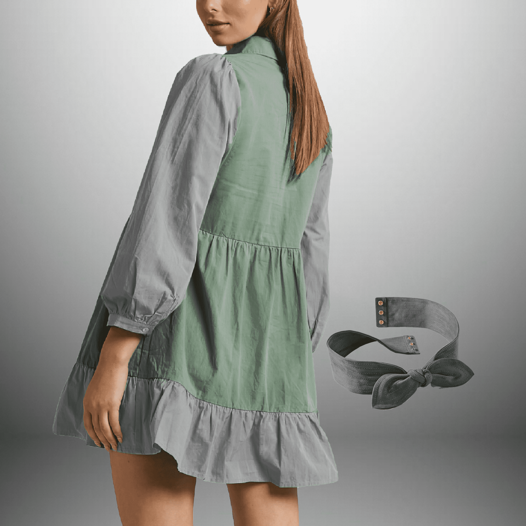 Window Blue Plicate Detail Belted Shirt Dress-RCD017