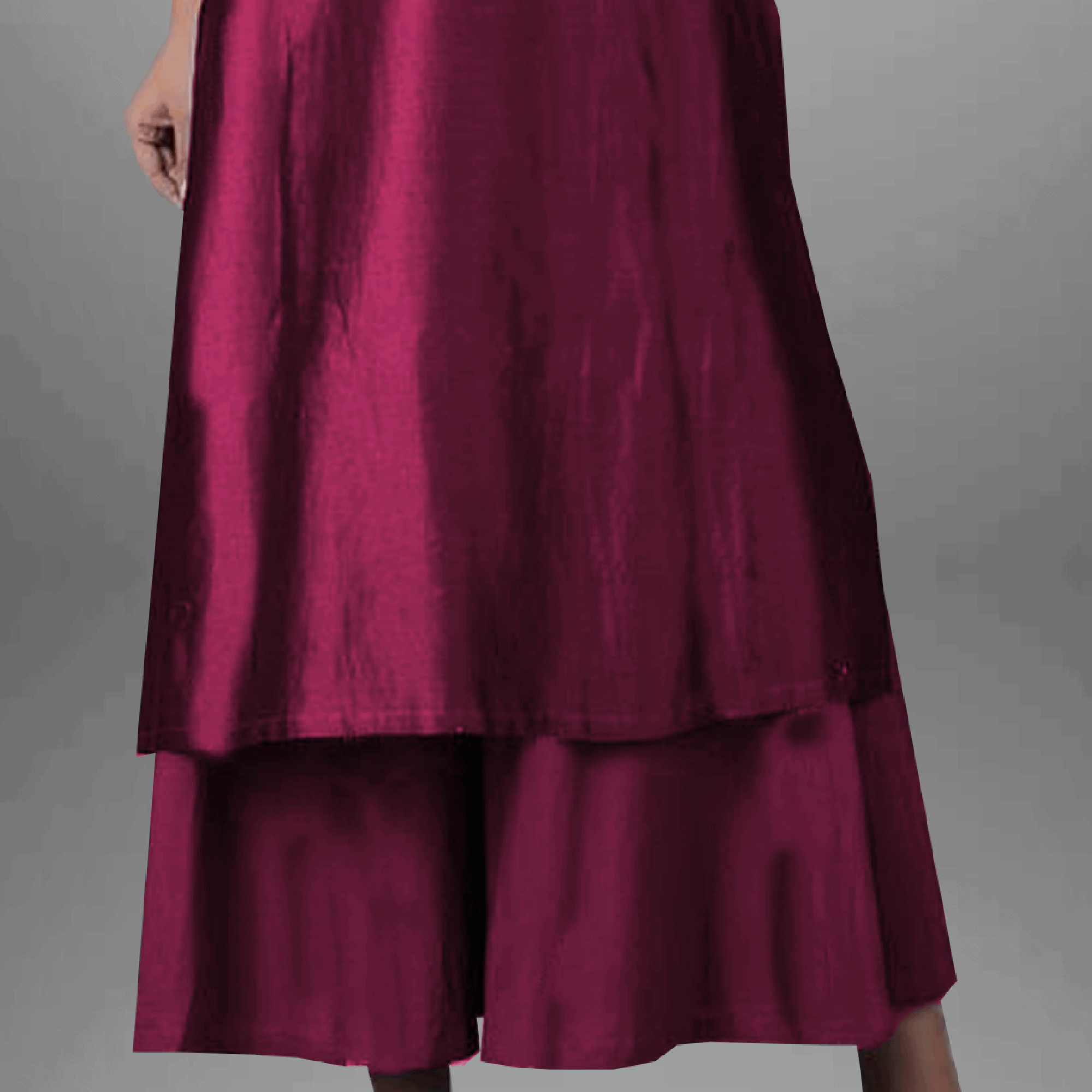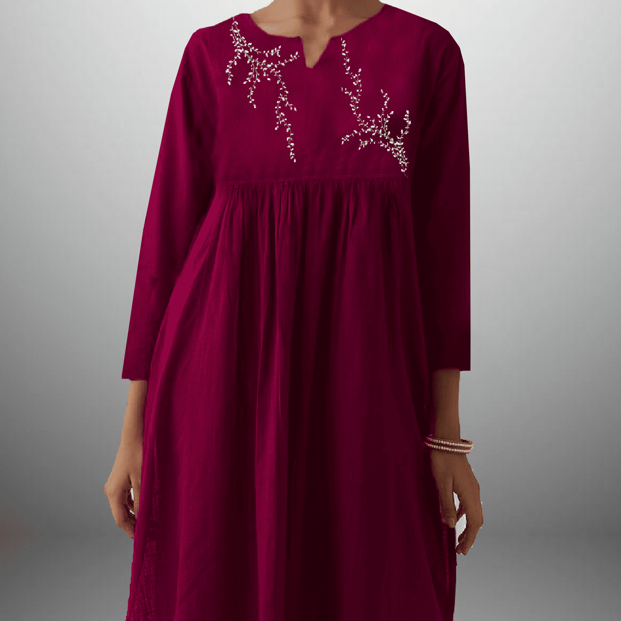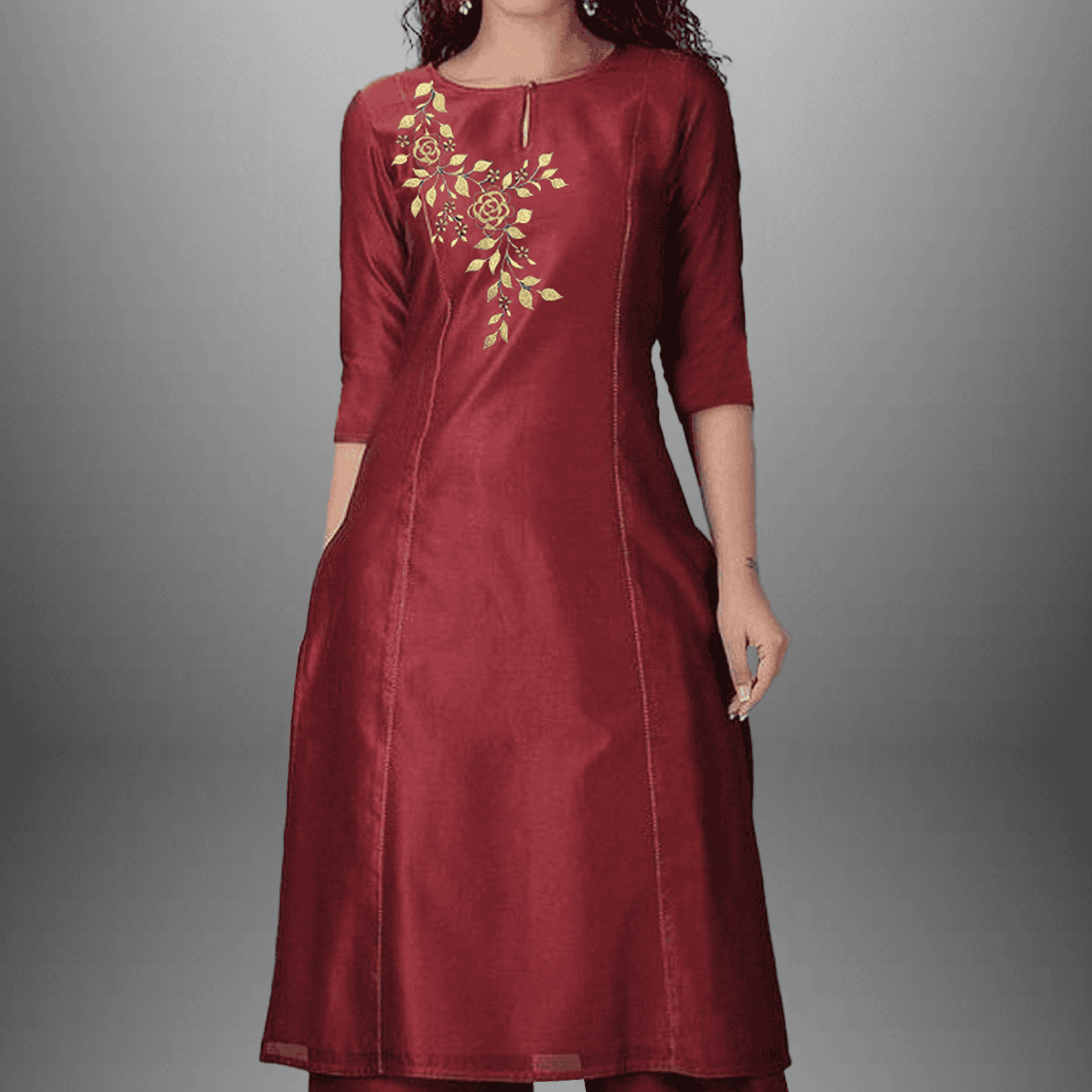 Women's Gathered Embroidered Kurta & Pant Set Rust Maroon - RWKS109