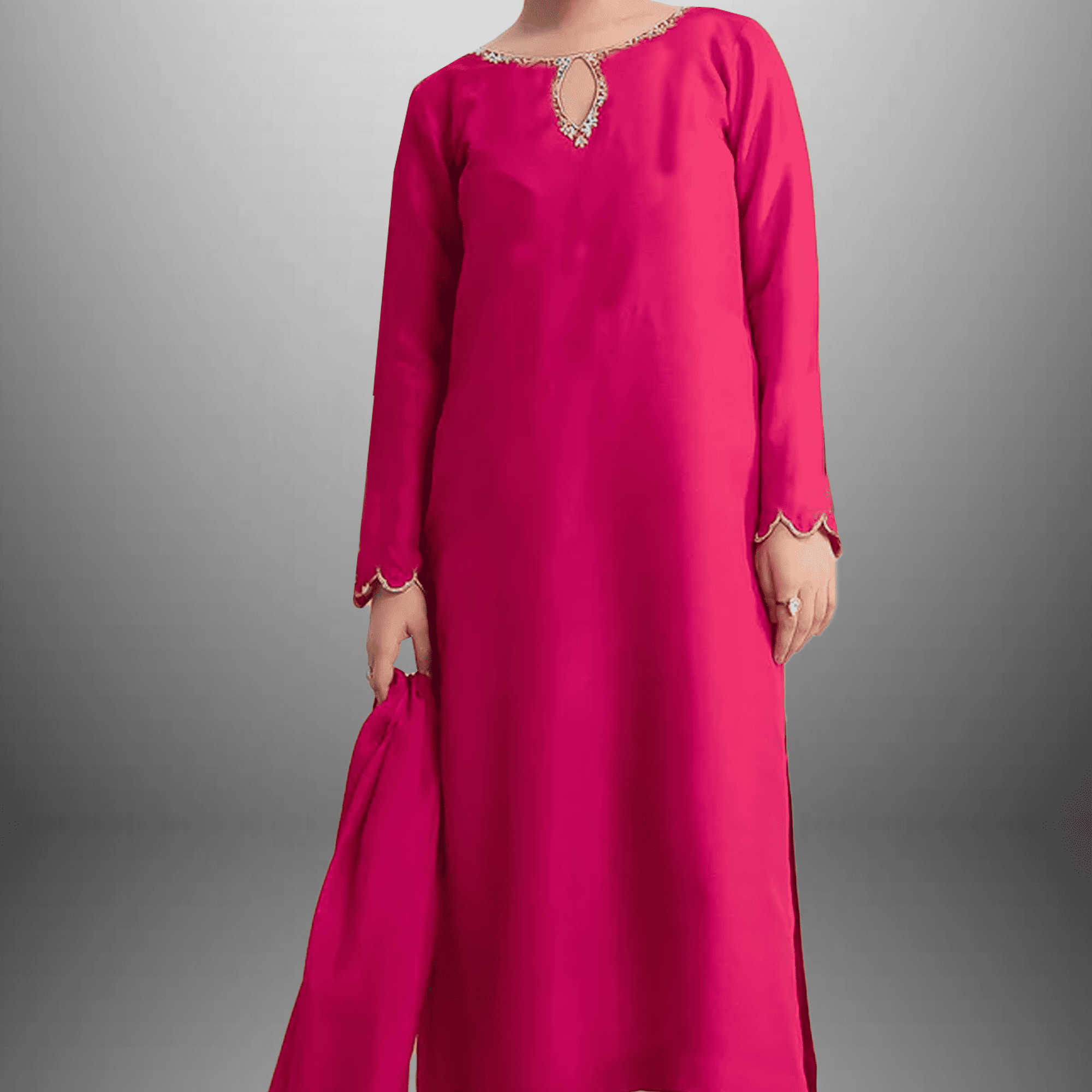 Women's 3 Piece Embroidered Kurta Fuchsia Pink - RWKS106