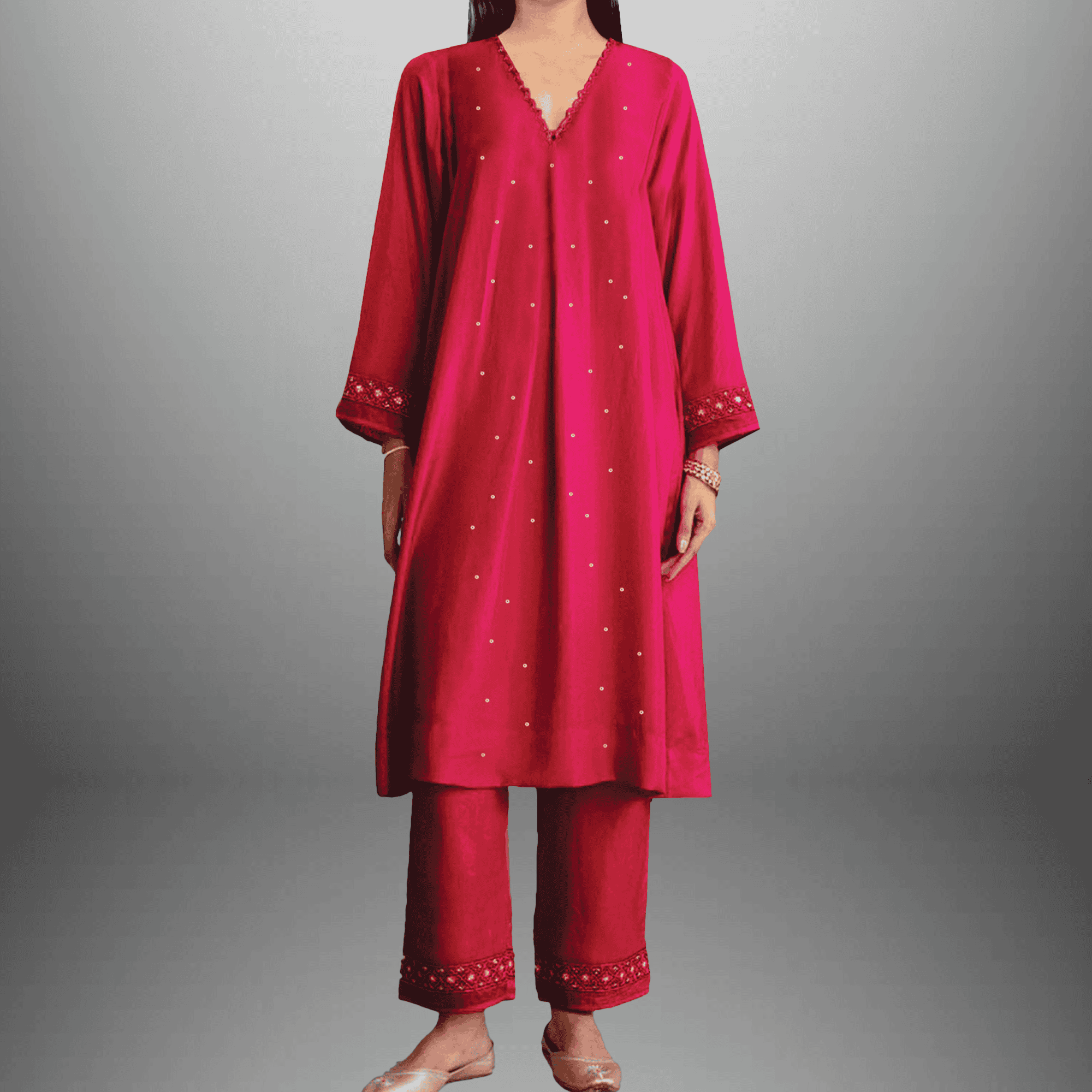 Women's Cord Set Kurta & Pant Raspberry Pink Embroidered - RWKS107