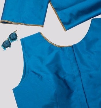 Blue Color Sequence Work Round Neck Ladies Blouse-RKFWW07